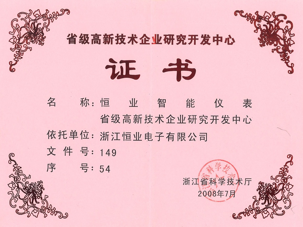 榮獲:浙江省高新技術(shù)企業(yè)、省級研發(fā)中心